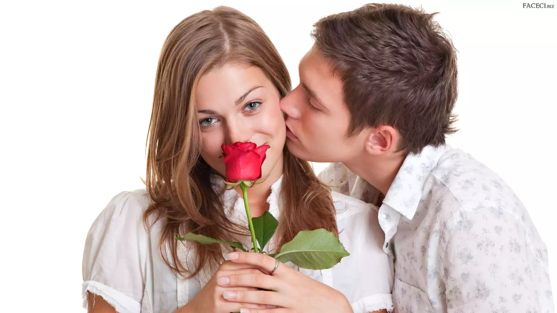Mężczyzna, Para, Pocałunek, Róża, Kobieta, Czerwona - faceci.biz